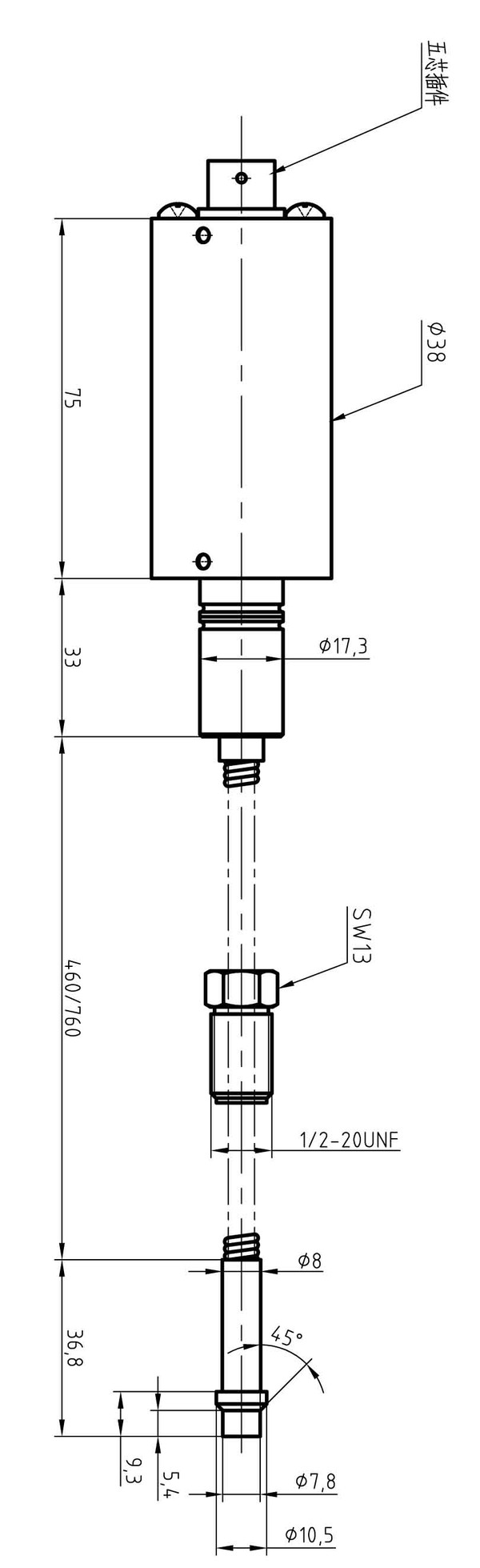 工艺连接:1/2”-20 UNF,M14× 1.5